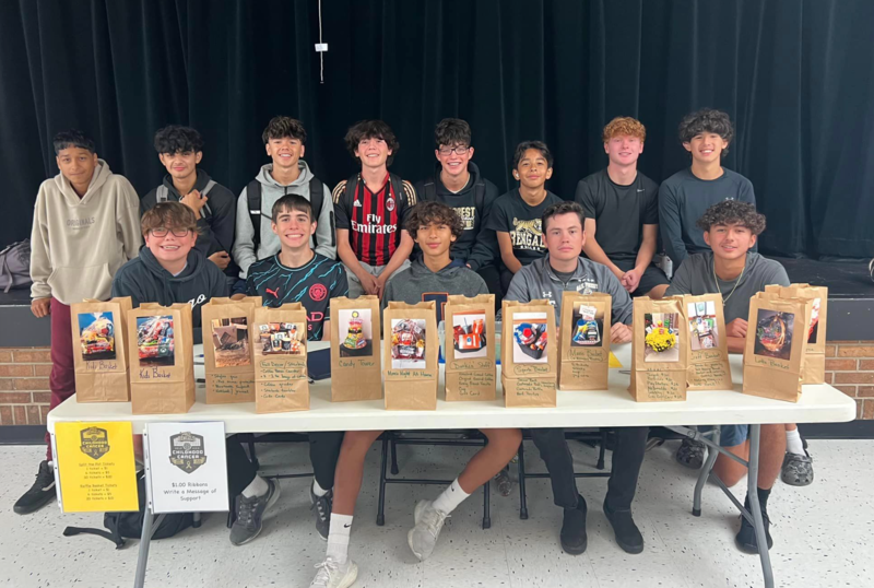 The Oak Forest Soccer team is a driving force behind this Cancer Awareness month too. On Sept. 26, they held their annual Childhood Cancer Awareness Game called “Bengals Help Kick Childhood Cancer!” and raised money for the Pediatric Oncology Treasure Chest by selling tickets for gift baskets during lunchtime and also selling raffle tickets as well! They really worked hard for a long time raising money for this event and raised $1805.
